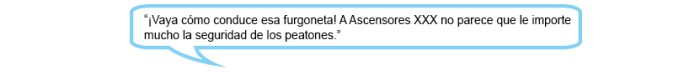 ¿Qué efecto puede causar en un cliente, actual o potencial, el ver un coche de una empresa ascensorista aparcado sobre una acera?. Un hecho así no refleja mucha sensibilidad hacia personas con discapacidad, colectivo hacia el que las empresas de ascensores nos debemos de manera muy especial.